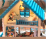 The dollhouse is the short version of a real house, and it is adorable. The material of the dollhouse is real wood like a house. The cabinet is make of wood, the window curtains are make of cloth, and the books are make of paper. LED lights included to light up the inside of the house. Every scene you will need you to assemble yourself, and you will have a ball!