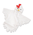 -White spa towel with attached ties, flappy, 3-D wings, embroidered orange beak and black eyes, and a crimson, 3D "comb" on top