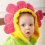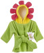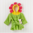 -Floral-green spa robe, attached belt with "leaf" appliques and blooming, sunshine-yellow hood surrounded by bright-pink, 3-D "flower petals" to frame baby's face
