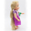 - Rapunzel is outfitted in a lavender dress with long ruffled sleeves