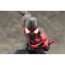Kotobukiya ArtFX Spider Miles Morales Figure. Spider-Man crouches low, left hand extended to sling a web, right arm back for balanceSpider-Man looks amazing in his black costume with red highlights.