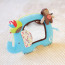 This large, baby-safe mirror is surrounded by a soft and friendly elephant. Plush fabric and the elephant's crinkle ear are soothing to touch as baby plays peek-a-boo and learns to recognize herself. With its stand and straps, you can set up the mirror anywhere. For more fun, a playful monkey rattle and his birdie sidekick are there for baby to grab and stick around the mirror.