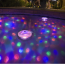 Light up your Saturday nights with underwater light shows put on with your very own Disco Ball! Four bright colorful LEDs create seven different light shows on the surface and bottom of your pool. Runs on three (3) AA batteries. Floats on pool surface. Do not submerge in water.