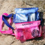 Take this wallet snorkeling, swimming, or boating to hold and protect your I.D., cash, credit cards, keys, phone and more from water damage. This PVC wallet features is available in two colors--pink and blue. It comes with an adjustable strap to attach to your waist. Measurements are 21.5 x 15 cm.