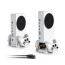 Xbox Series S Cooling Stand. Designed with the fan at the bottom can accelerate the air circulation inside the console system to cool it better. The button can control the fan operation at any time. The metal base also can effectively cool the Xbox Series S console, which improve the operational life span. Anti-slip rubber bottom design will keep the vertical stand tightly and stable.